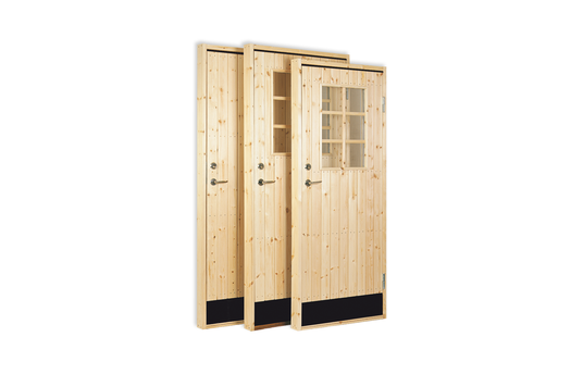 Våra glasdörrar har stort användningsområde och kan användas som gångdörr till friggebodar, bastustugor eller fritidshus. Du kan även med fördel använda dem intill en altan. Vi tillverkar våra dörrar i vår egen fabrik i Sorsele i Västerbottens inland från kvalitetsvirke norrländska skogar.